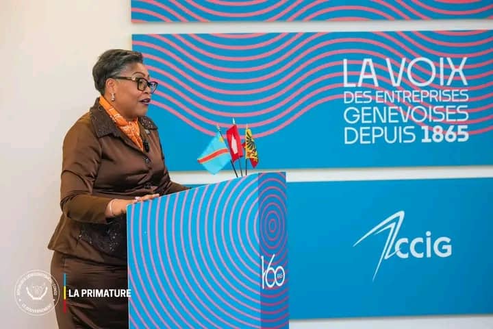 La Première Ministre Judith Suminwa Tuluka a présenté , ce jeudi 20 novembre 2025 à Genève (Suisse) , à la chambre de commerce et d’industrie (CCIG) , la vision du Gouvernement pour une gestion transparente des minerais et un partenariat économique fondé sur des investissements responsables.