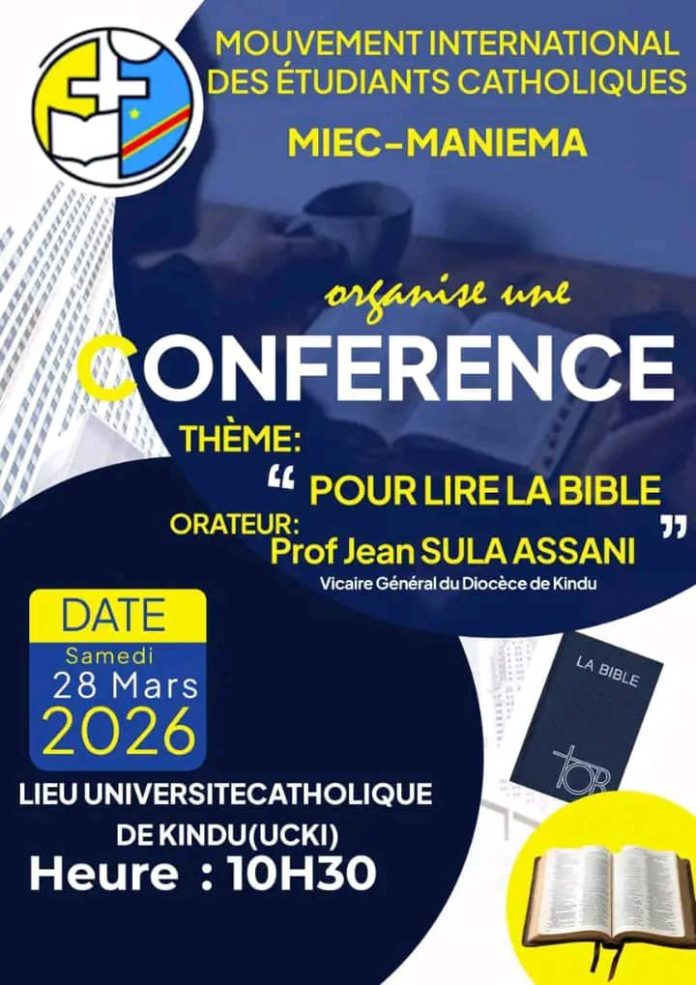 Le mouvement international des étudiants catholiques a organisé une conférence sous le thème « Pour lire la Bible » ce samedi 29 mars 2026 à l’université catholique de Kindu.